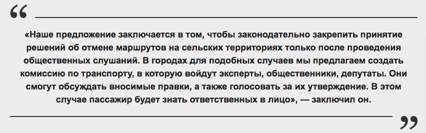 Согласно законопроекту, для отмены маршрутов в сельской местности необходимо будет проводить общественные слушания. Однако такая проблема существует и в больших городах, отмечает Зотов.