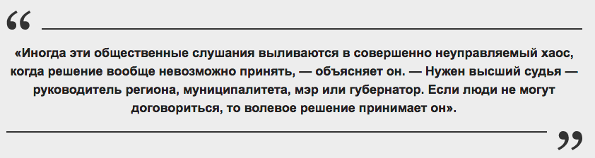 «Местное сообщество должно иметь возможность более активно влиять на принятие решений, от которых зависит его повседневная жизнь. Всё, что связано с общественным контролем, слушаниями, согласованием отмены маршрутов, — это правильно», — поясняет он.